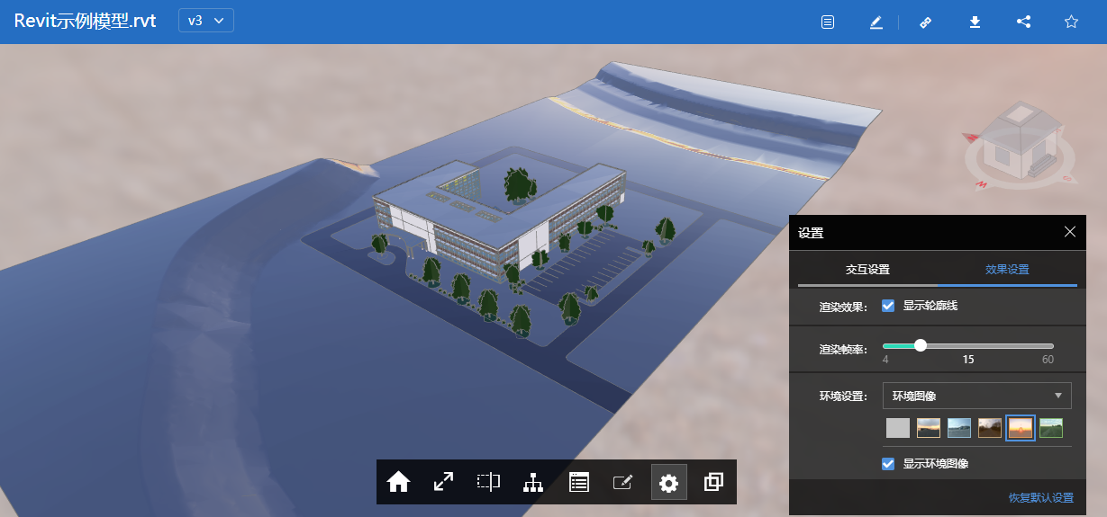 3)新增模型效果设置中环境图像的显示控制与切换,可以根据需要选择不同的光照环境。