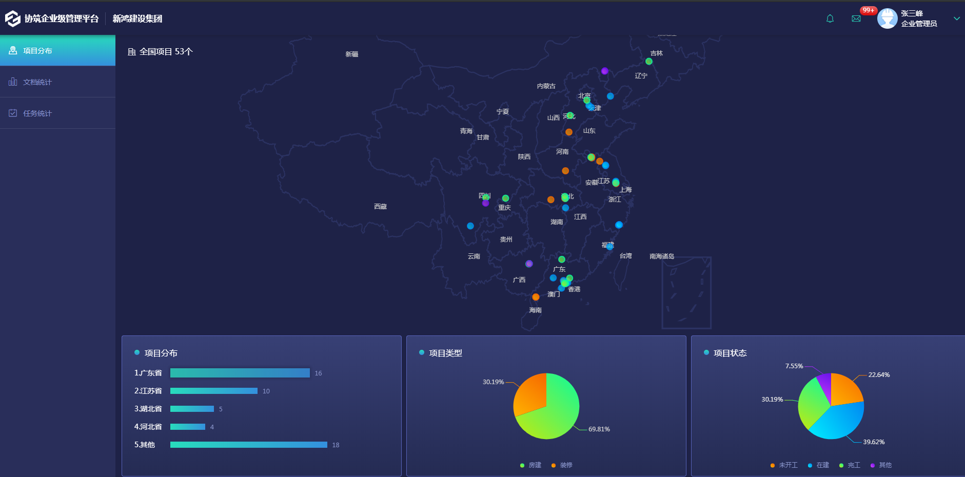 摘要:协筑企业级管理平台可以按区域管理项目,轻松查看项目分布地区、项目类型、项目状态,追踪各区域相关项目的文档更新情况、任务流程进展。
