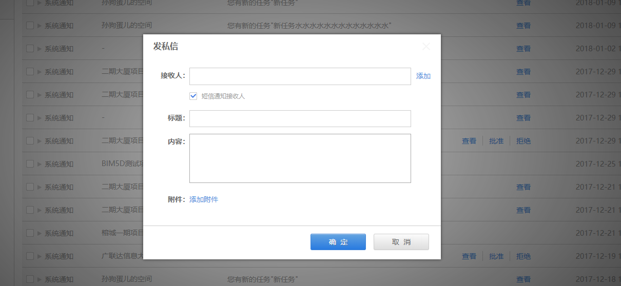 1.4 新增发送私信时可以同时选择短信通知接收人功能,便于及时通知相关人;